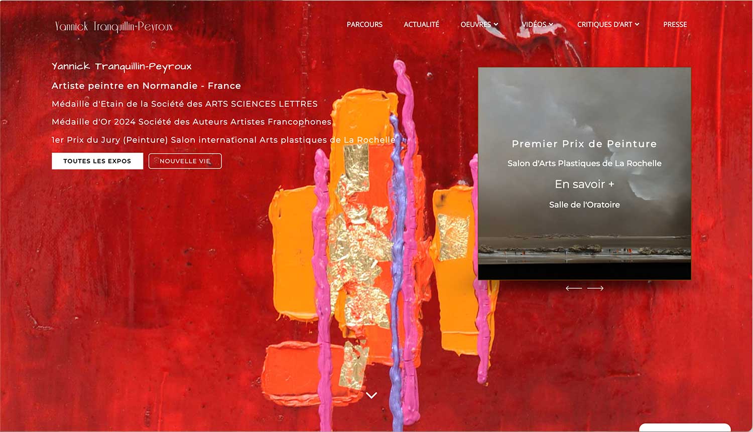 Site vitrine qui permet de communiquer toute l’actalité de l’artiste, ses expositions, etc.